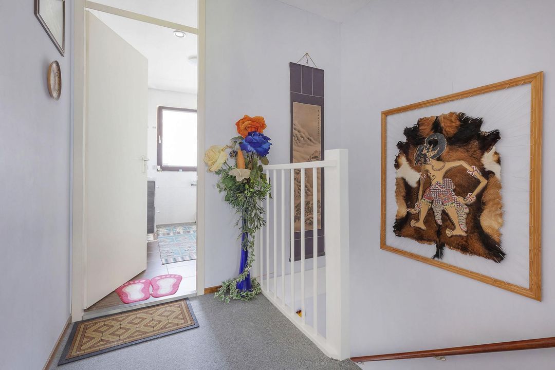 De 1e verdieping is ingedeeld met een overloop, een badkamer uit 2013 met een inloopdouche, toilet, luxe wastafelmeubel. De 1e verdieping is verder ingedeeld met 2 slaapkamers aan de achterzijde en een slaapkamer aan de voorzijde. In de directe omgeving zijn woningen met een dakopbouw.