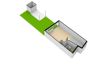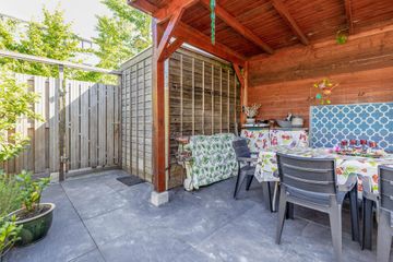 The backyard is located on the north and has a storage room with electricity and a practical roof in the back of the garden. The backyard is accessible through a back and the living room.