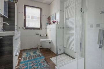 The 1st floor is divided with a landing, a bathroom from 2013 with a walk-in shower, toilet, luxury washbasin. The 1st floor is further divided with 2 bedrooms at the rear and a bedroom at the front. In the immediate vicinity are houses with a roof structure.