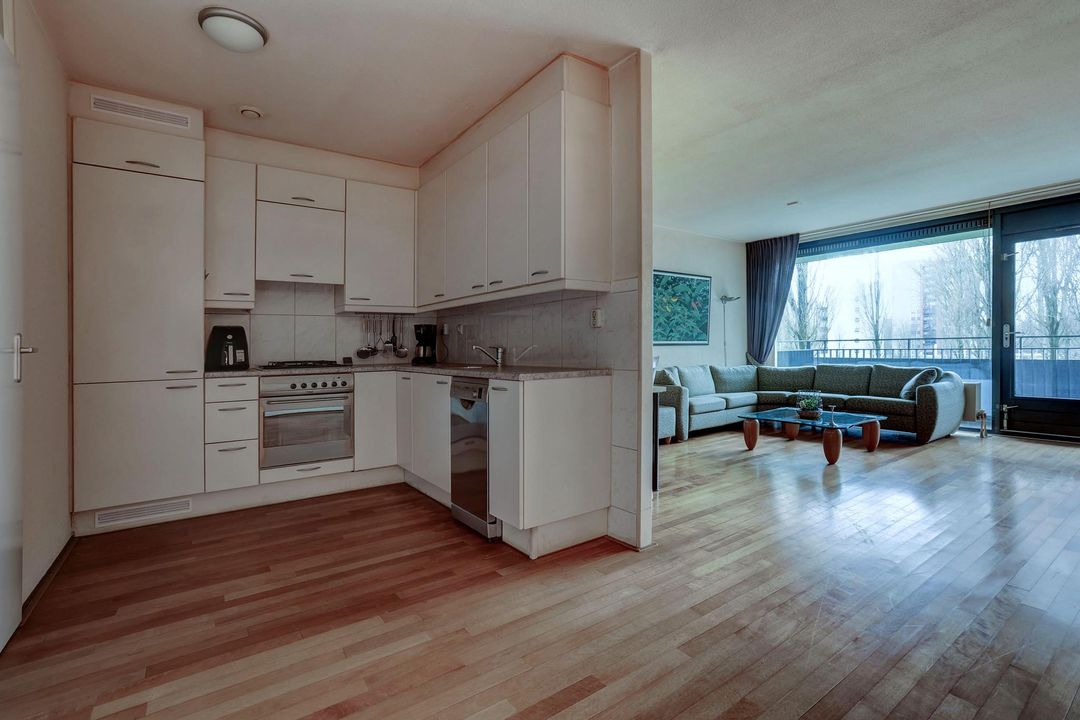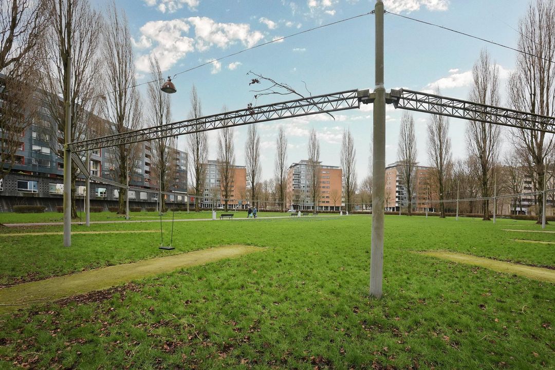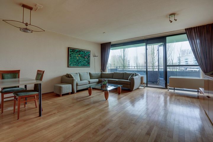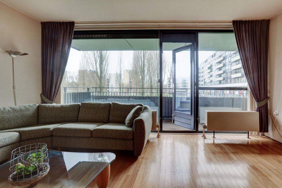 Spacious 3-room apartment in an easily accessible and quiet location on the Koningin Wilhelminapark in Overtoomse veld, close to the A10 ring road. The apartment complex was completed in 1998 and designed by the well-known architects Baneke and Van der Hoeven. The apartment has a large balcony, a storage room and private parking in the garage.